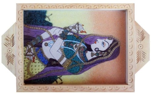- Serving tray made with combination of Gem Stone painting & Wood Carving
