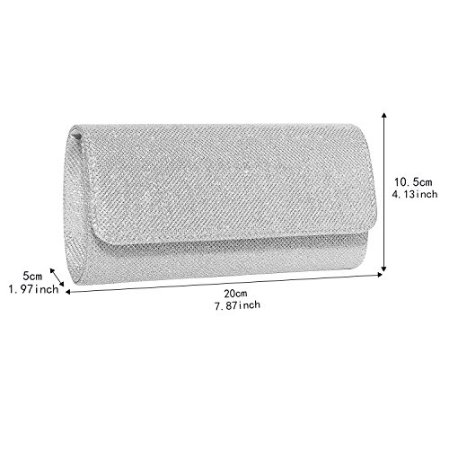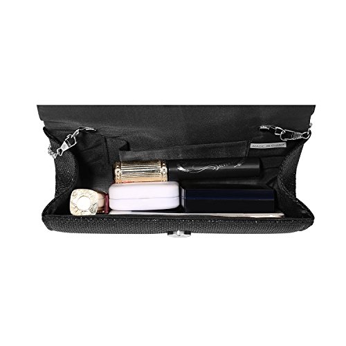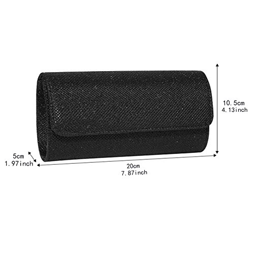 Product Description Specifications: Color: Black / Silver Material: PU Size: 20 x 6 x 10cm Use: Clutch Handbag/Shoulder Chain Bag/Purse Occasion: Wedding/Cocktail Party/Evening/Prom Open Method: Magnetic Snap Note: 1. Transition: 1cm=10mm=0.39inch 2. Due to different measurement method, there may be slight deviation for the measurement data. 3. Due to the quality differentiation between different monitors, the picture may not reflect the actual color of the item. Features: High quality and Durable hardware buckle attached. Minimalist design highlight your style and brings more convenience. It makes you look more charming , classy and fashion. Perfect For Wedding, Party, Prom, Ball and evening events. Best gifts for girlfriend, wife, lover and friends. Fit for all style of clothes. Package included: 1x Evening Bag