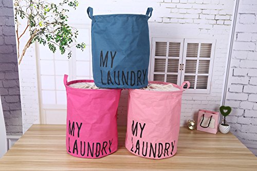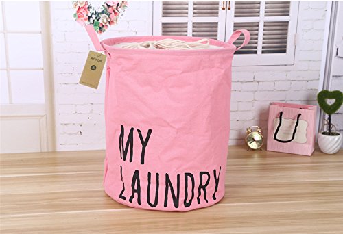 Printed Ramie Cotton Fabric Folding Laundry Storage Basket Toy Laundry Hamper with Handle (Pink my laundry)