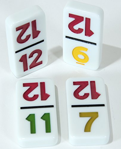 Enjoy your Dominoe Game with this professional size set of double 12 NUMBERED dominoes. The color-coded numbers are embossed into the dominoes for long-lasting, wear-resistance. Big bold numbers on solid white dominoes are super easy to read and score. Great for low light situations like camping, RVer's, or those with vision challenges.Professional dominoes measure 2 inches long, 1 inch wide and just shy of 3/8 inches thick. All double twelve dominoe sets have 91 dominoes which provides for every possible combination between 0/0, 0/1, 1/1 up to 12/12. This set is excellent for most dominoe game variations including Mexican Train and Chicken Foot.