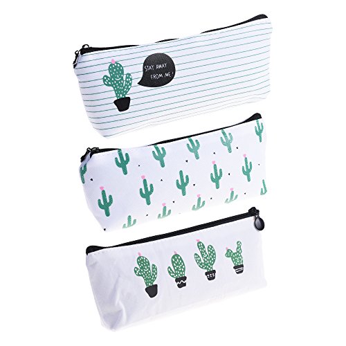 BCP 3 Pcs Cactus Pattern Canvas Pen Pencil Bag Case Holder Makeup Cosmetic Pouch Bag