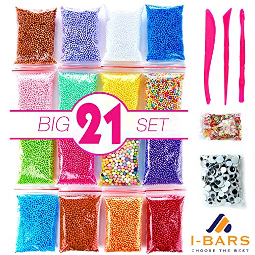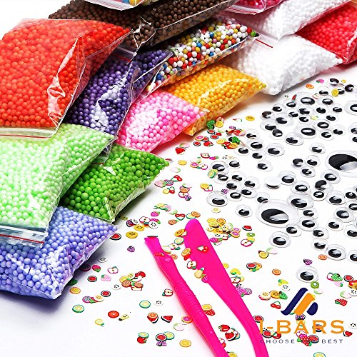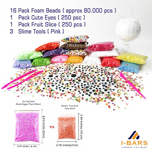 Foam Beads Slime Micro Floam Beads 18 pack Craft Foam Beads Slime Colorful Micro Foam Beads Balls DIY Slime 16 Bags (80000) Foam Balls 250 pcs Fruit Slice 220 pcs Cute Eyes 3 Slime Tools from I-BARS