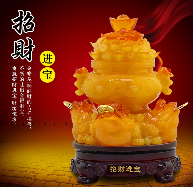开光金蟾摆件大号金蝉招财金蟾蜍聚宝盆元宝办公室风水装饰工艺品
