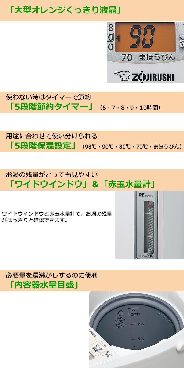 | 大きな文字の操作パネルで、見やすく使いやすい電気まほうびん。 |