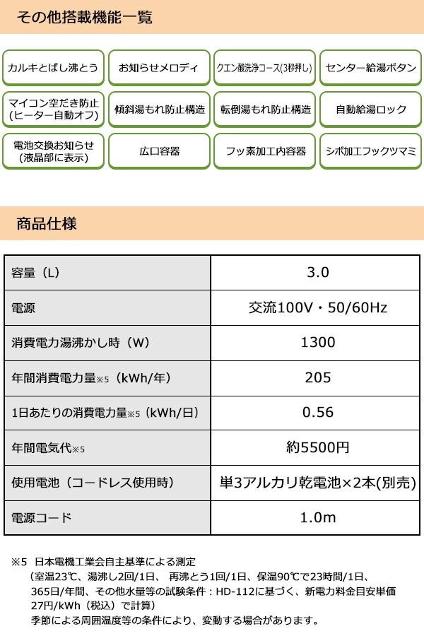 電気で沸かしてまほうびんで保温する電気まほうびん。プラグをはずしても乾電池のチカラで、電動給湯できます。1300Wの「ハイスピード沸とう」でたっぷりのお湯が素早く沸きます。大きな文字と分かりやすい操作パネルで、シニアの方にも見やすく操作しやすいように設計しました。 |