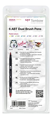 -. Binding : Accessory -. Brand : Tombow -. EAN : 4003198104044 -. Feature : Brush pens with two tips...flexible brush and fine tip in one pen / Colors can be mixed together and used as watercolors / Water-based ink is acid-free, odorless, and non-toxic -. Label : Tombow -. Manufacturer : Tombow -. Model : ABT-6P-2 -. MPN : ABT-6P-2 -. PackageQuantity : 1 -. PartNumber : ABT-6P-2 -. ProductGroup : Art and Craft Supply -. ProductTypeName : OFFICE_PRODUCTS -. Publisher : Tombow -. Studio : Tombow -. Title : Tombow Dual Brush Pens Pastels - Pack of 6 Colors (ABT-6P-2)