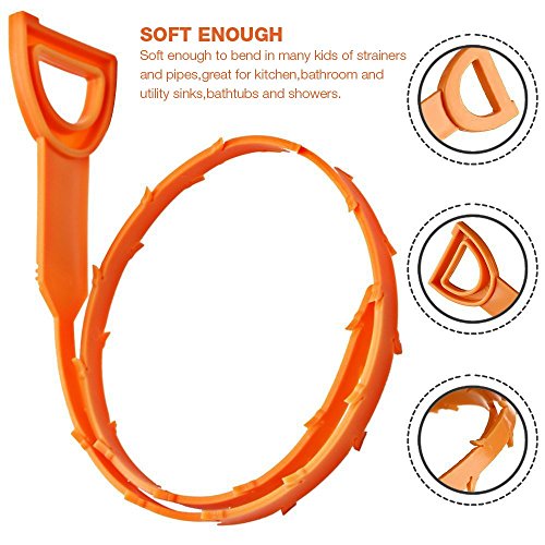 Simply insert drain clog remover thru most drain and strainers as it grabs obstructions at P-trap were most clogs occur or hook the hair.