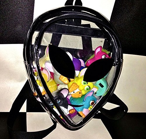 -. Feature : Adjustable Length Strap At Back / Material: High Quality Clear PVC / Dimension: around 36 x 30 x 13 cm or 14.2" x 11.8" x 5.1" / Alien Graphic At Front / Two Spacious Zipper Compartments