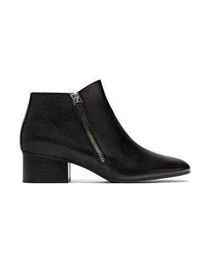 Product Description Black leather ankle boots. Side zip fastening with maxi pull tab. Rounded toes. Heel height of 4,4 cm. / 1.7 inches Official brand size equivalence for Women Shoes. Size 35 | USA 5 ? ?|?UK 2 Size 36 | USA 6 ? ?|?UK 3? Size 37 | USA 6.5 |?UK 4? Size 38 | USA 7.5 |?UK 5? Size 39 | USA 8 ? ?|?UK 6 Size 40 | USA 9 ? ?|?UK 7? Size 41 | USA 10 ?|?UK 8? Size 42 | USA 11 ?|?UK 9? Size 43 | USA 12 ?|?UK 10 0