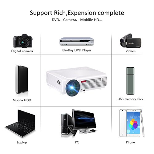This Projector is specially designed for business man, personal entertainment and home theater. Its physical resolution is up to 1280*800 and maximum resolution is up to 1920*1080. It has built-in Android 4.4 and Wi-Fi, and is equipped with HDMI,VGA ,USB port, etc, you can connect the Projector with Computer / Notebook, Digital devices, Earphone, DVD, Video player, USB devices, Game Console, etc.