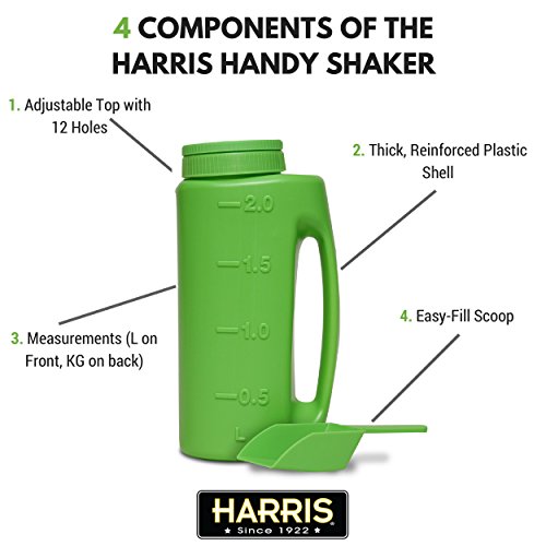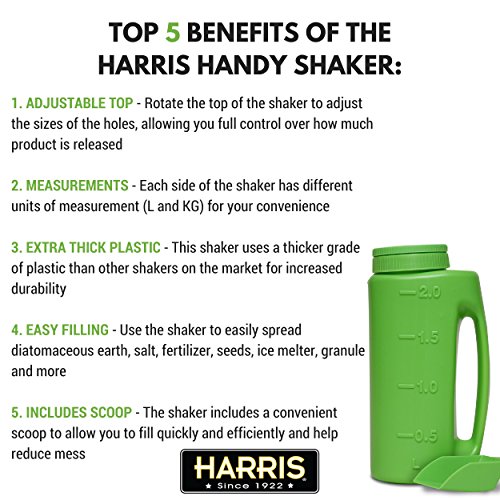 Harris Handy Shaker with Scoop and Adjustable Top for Diatomaceous Earth, Salt, Fertilizer, Seeds, Ice Melter and Granule (2L or 76oz)