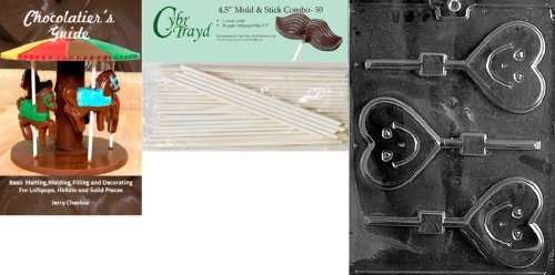Cybrtrayd 'Happy Heart Lolly' Valentine Chocolate Candy Mold with 50 4.5-Inch Lollipop Sticks and Chocolatier's Guide