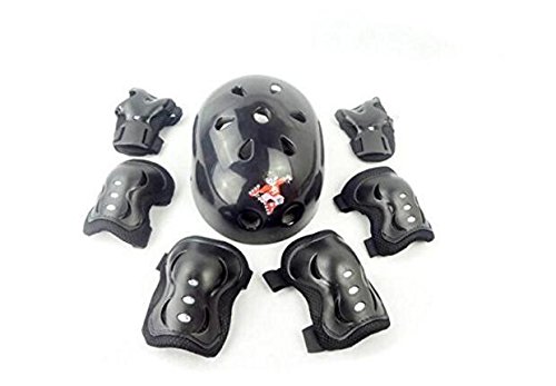 -. Feature : Adjustable strap system fit for kids about 6-14 years old ,give your child a surP.R.Ise. / Made of durable ASB plastic+ sponge +breathable net + elastic band for safety and comfort use / Thickened soft sponge and velcro strap design provides more protection and secure / 7PCS skate / scooter protection set bring you all-round and perfect protection while doing skateboard, roller blading, bicycle and many other outdoor sports. / Package: 1set(7pcs) : 1 Helmet, 1 pair Knee Pads, 1 Pair Elbow Pads and 1 Pair Wrist Pads