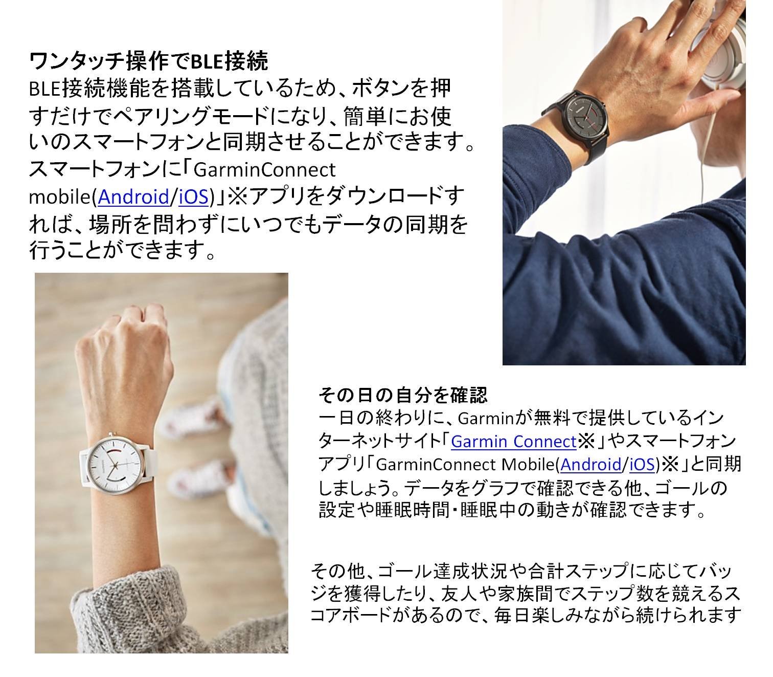 Data can be viewed by synchronizing with Garmin's GARMIN CONNECT or GARMINCONNET MOBILE.