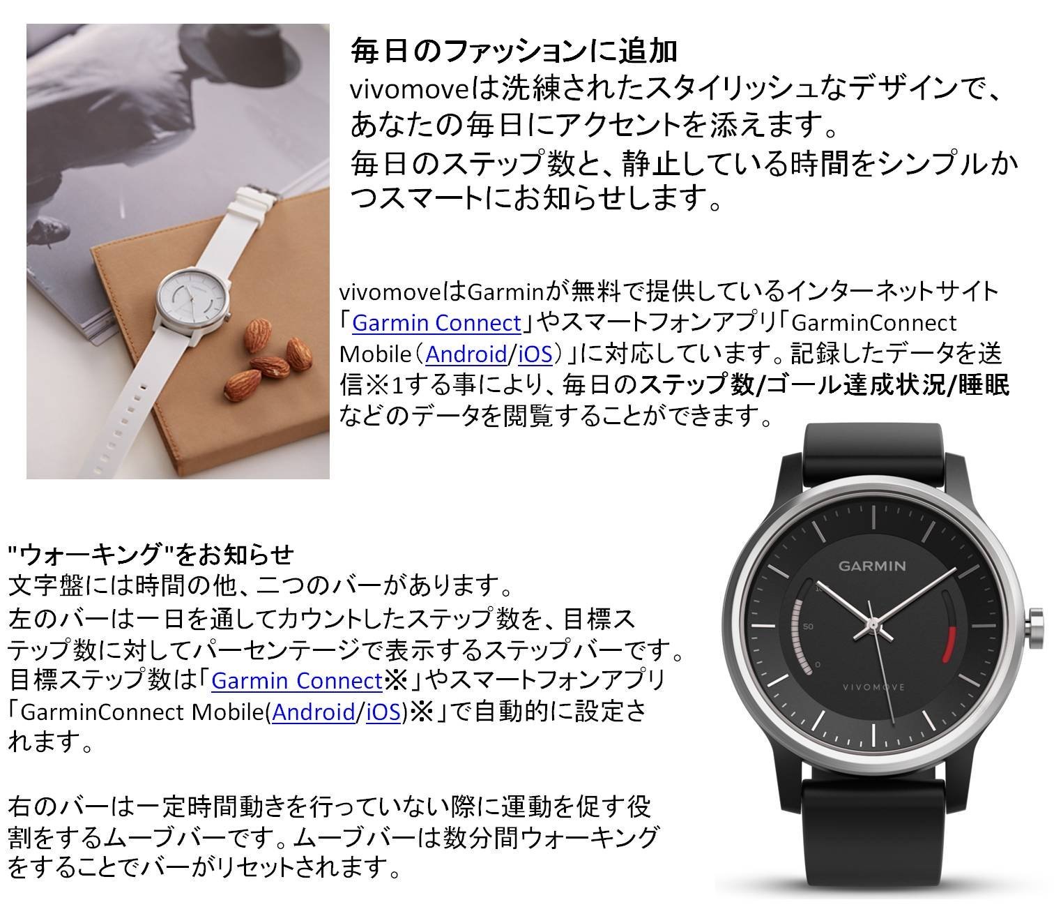 Keep track of your life log with a simple step bar easy to understand at a glance and a move bar that displays time when there is no movement.