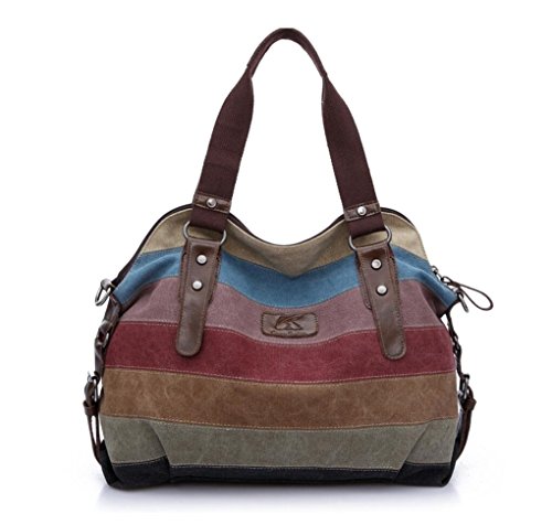 -. Feature : Material: Canvas,soft and durable washed,good quality and sturdy,comfort touch feel / Design with multi color stripes, makes it fashion and retro,zipper closure with multiple pockets,big capacity / Have extra adjustable and removable shoulder strap,makes you having 3 carrying options (Cross-body, Single Shoulder and Totes),demanda all your need,easy to carry / Perfect for your casual life style,great shoulder bag for Casual,Travel,School,Shopping,Fashion,Gym,Hiking