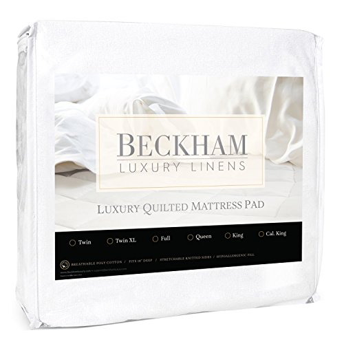 -. Brand : Beckham Luxury Linens -. Feature : PROTECT YOUR MATTRESS: Safeguards against stains while preventing exposure to dust mites and other potential allergens to keep your mattress like new! Even a small stain can void a mattress' warranty. Our mattress pad provides superior comfort and protection. / PREMIUM QUALITY: Our durable and long-lasting design will keep your mattress P.R.Istine for years to come! / RELAX AND RENEW: Our Beckham Luxury Cotton Blend Mattress Pad has the right amount of lift to provide you with a comfortable night's sleep while protecting your mattress to keep it in excellent condition for years to come. Additionally, we have included an elastic band around the edge of the pad to ensure the pad stays in place even with the shifting and sliding of the most active sleepers! / EASY TO CLEAN: No expensive cleaning required. Simply machine wash and tumble dry! / SATISFACTION GUARANTEED: We are so confident in the quality of our product that we offer a 30-day satisfaction guarantee! If you are unsatisfied, simply contact us to return the product for a full refund. -. Label : Beckham Luxury Linens -. Manufacturer : Beckham Luxury Linens -. Model : BLL-QLTMTRSPD -. MPN : BLL-QLTMTRSPD -. PartNumber : BLL-QLTMTRSPD -. ProductGroup : Home -. ProductTypeName : HOME_BED_AND_BATH -. Publisher : Beckham Luxury Linens -. Studio : Beckham Luxury Linens -. Title : Beckham Hotel Collection Mattress Pad - Luxurious Quilted, Hypoallergenic