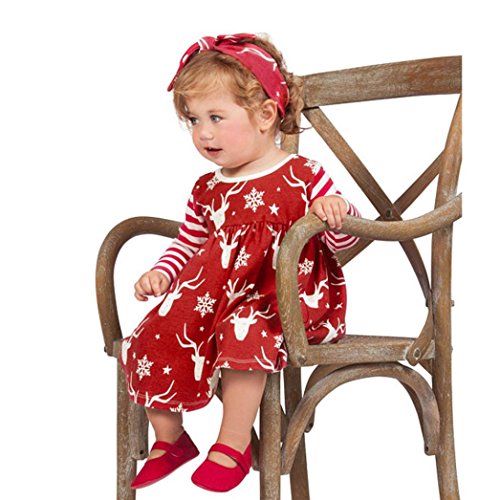(Sunbona)/Baby Stationery/Stationery Sets/DIRECT FROM USA/Sunbona Toddler Baby Girls Deer Striped Dress Casual Party Christmas Outfits Clothes Clothes (1...