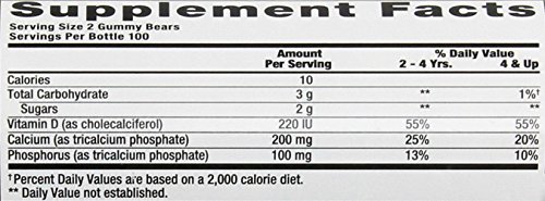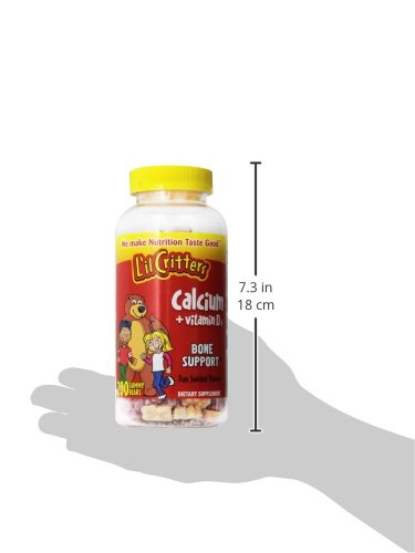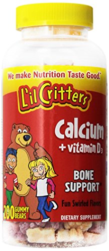 -. Binding : Health and Beauty -. Brand : Lil Critters -. EAN : 0027917256658 -. Feature : Calcium / The Fun and tasty way to build strong bones / Just two L'il Critters Calcium Gummy Bears(TM) contain as much calcium as a 5 ounce glass of milk plus vitamin D for increased calcium absorption / Packaging May Vary -. IsAdultProduct : 0 -. IsAutographed : 0 -. IsMemorabilia : 0 -. Label : Lil Critters -. Manufacturer : Lil Critters -. Model : 7.92555E+11 -. MPN : 27917256658 -. NumberOfItems : 1 -. PackageQuantity : 1 -. PartNumber : 27917256658 -. ProductGroup : Health and Beauty -. ProductTypeName : HEALTH_PERSONAL_CARE -. PublicationDate : 2012-09-04 -. Publisher : Lil Critters -. ReleaseDate : 2009-02-18 -. Studio : Lil Critters -. Title : L'il Critters Calcium with Vitamin D - 200 Fun Swirled Flavored Gummy Bears -. UPC : 027917256658 Contains 3 great NATURAL flavors: Black Cherry, Orange, Strawberry, Two bears contains as much calcium as a 5oz glass of milk! Contains no artificial flavors, colors, gluten free.