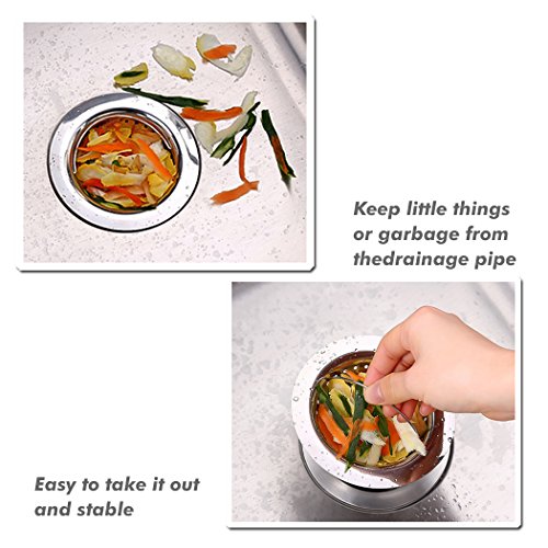 STANDARD SIZE: 4.3" overall dia. includes 2" micro-perforated bowl area contoured by a metal sheet flat rim to rest over sink's drain. Suitable for most American families¡¯ kitchen sinks garbage disposals.