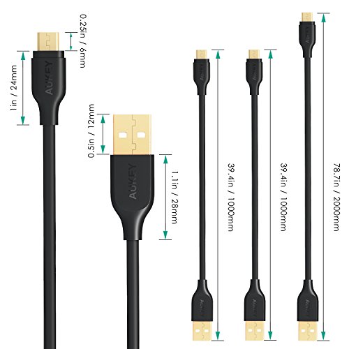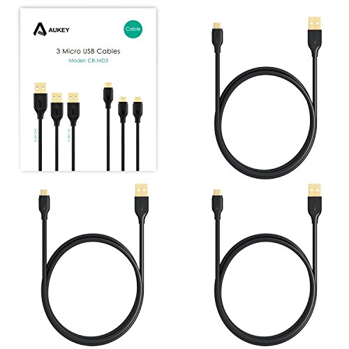 AUKEY USB cable allows you to have spare cables when you need the connections the most. With 3 pack quick charge micro usb cables, you can always keep a backup cable in your home/office/car/handbag, and never have to worry about forgetting USB cable again.