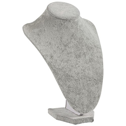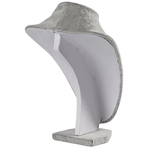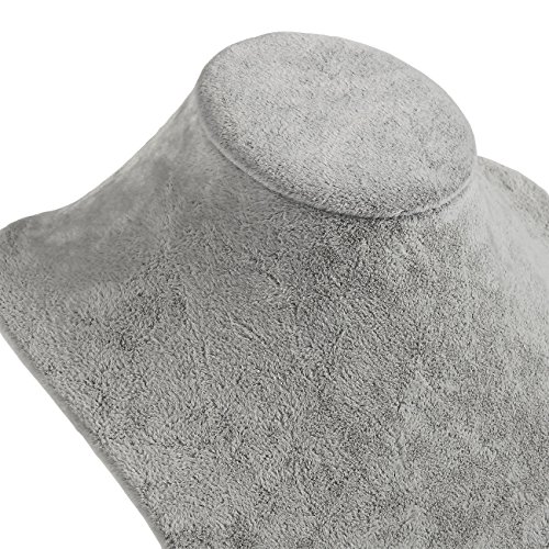 Jewelry Display - Jewelry Bust Necklace Display - Freestanding Velvet Jewelry Display Retail Necklace Mannequin Stand - For Chains, Chokers, Pendants, Lockets, Grey, 9.75 x 7 x 3.7 Inches