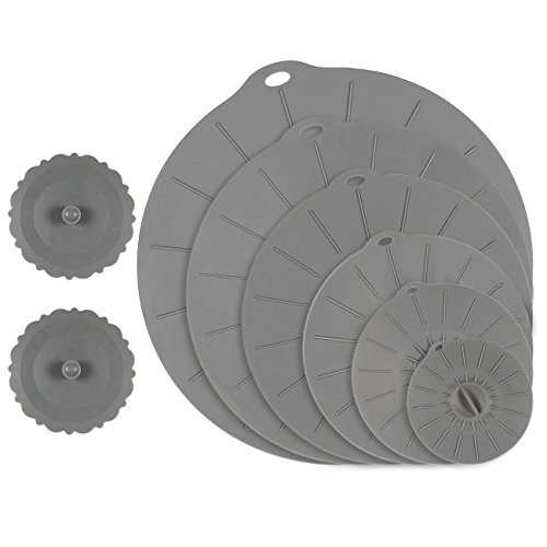 Studio : Juvale Publisher : Juvale Product Description A cost-effective and environmentally-friendly solution to the problem of having too much plastic around the house; these silicone stretch lids are ideal for all types of container lid formats and come in 7 handy sizes. Ideal for cups, beer mugs, rice bowls, mason jars, salad bowls, serving bowls, soup bowls and pots! Constructed using expandable FDA approved silicone and are stretchy enough to fit the round top of many different styles of container. Pull the tabs around the edges of each lid to effortlessly remove them. Dimensions: Smallest to largest: 3.9 inches; 6 inches; 7.87 inches; 10.24 inches; 11.25 inches; 13.75 inches; 2 scallop lids: 4.33 inches in diameter 0