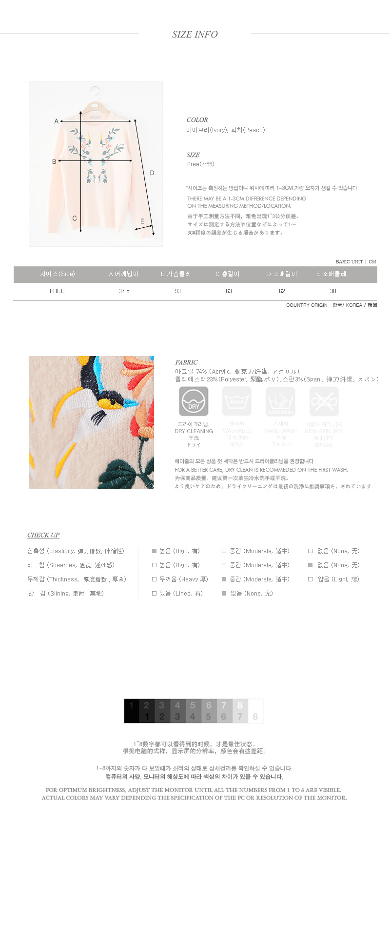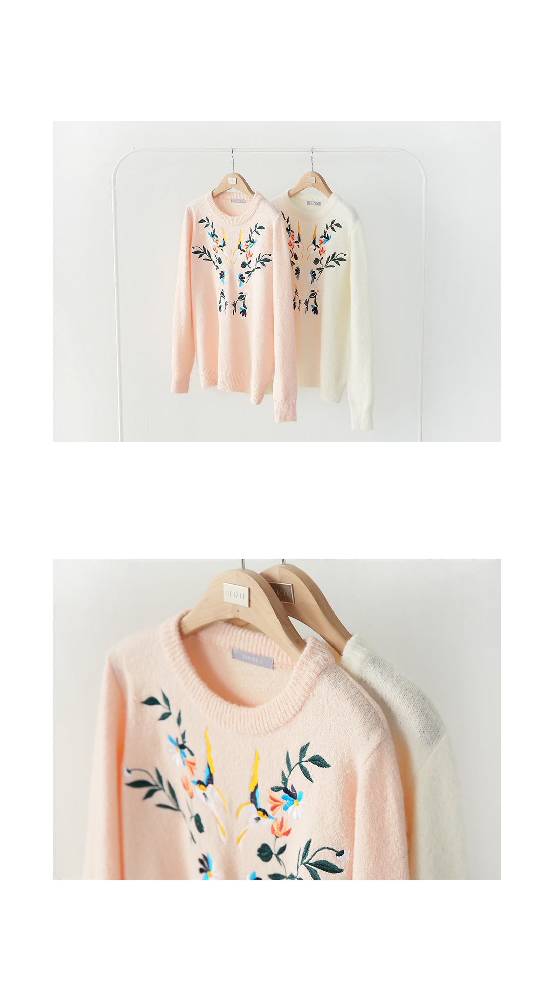 특별한 악세서리없이도 시선을 사로잡는 자수 포인트의 라운드니트에요! 보송보송 소프트한 니트 소재감으로 편안함은 물론 기분좋은 착용감을 선사하는 라운드니트구요~ 프론트 자수 디테일이 특별한 악세서리가 없어도 매력적인 룩을 완성해주구요, 베이직한 핏으로 다양한 룩에 간편하게 연출되는 데일리아이템이에요! 팬츠,스커트 등 간편하게 매치해도 스타일리시한 자수니트랍니다^^