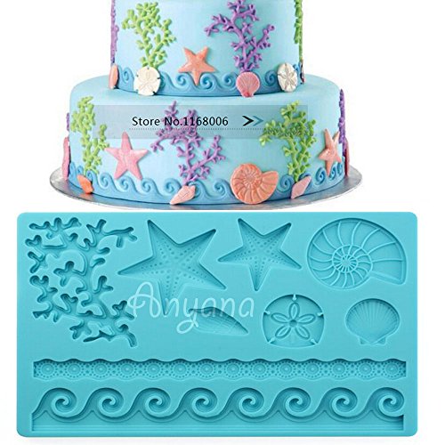 Anyana Sea Shell starfish Fondant Silicone mold Wedding Cake Mould Chocolate Decoration Tools Candy Sugarcraft cookie baking 018a
