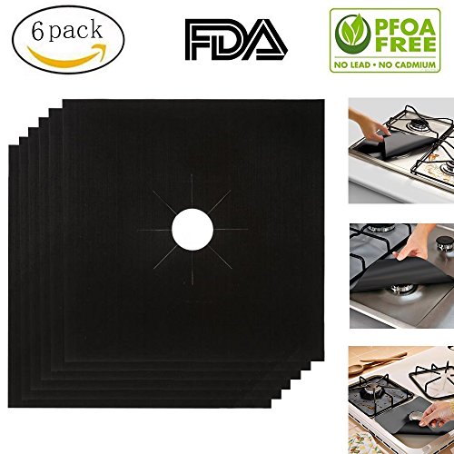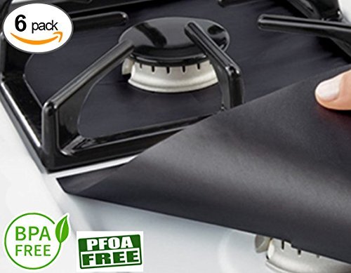 6 Pack Gas Range Protectors, 2mm Double Thickness Non-Stick Reusable Cuttable Dishwasher Safe Stove Burner Covers (10.6" x 10.6")