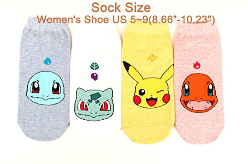 -. Title : WOWFOOT Cute Pokemon Cartoon Character P.R.Int Cotton Crew Floor Socks For Women Girl Boy 4pair