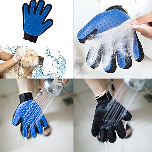 Pet Grooming Glove-Pet bathing gloves-Pet Hair Remover Mitt - Massage Tool with Enhanced Five Finger Design- Deshedding Glove for Gentle and Efficient Pet Grooming -1 Pack (blue) Right Hand