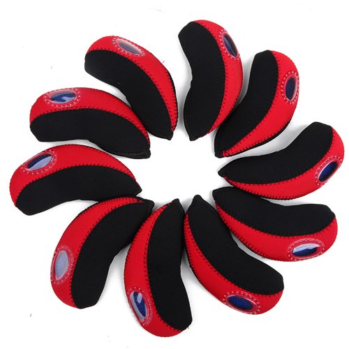 - Title : 10pc Neoprene Golf Iron Club See Through Window Head Cover Protection Case Set (Red) - for Taylormade, Nike, Callaway, etc.