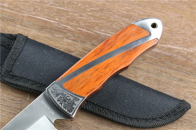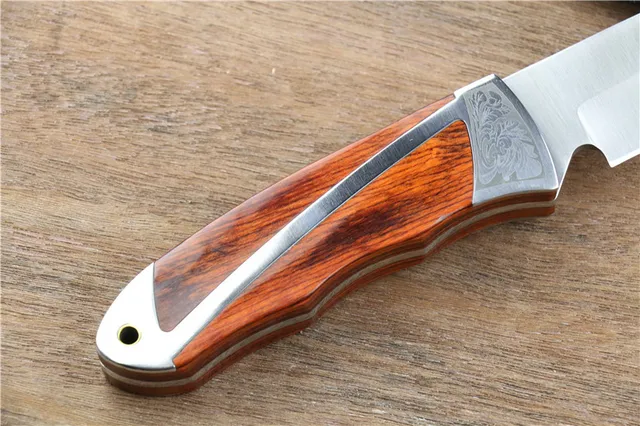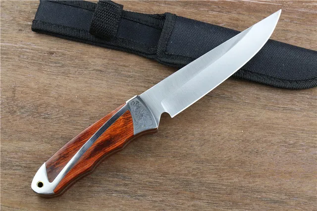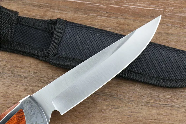 | [해외] 고정 나이프 거울 440 블레이드 나무 핸들 직선 나이프 캠핑 전술 나이프 포켓 능선 EDC 생존 사냥 도구 |