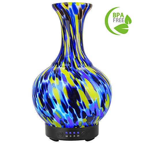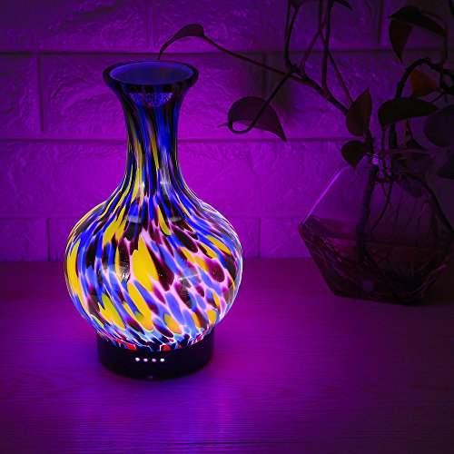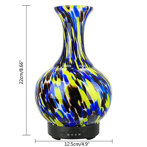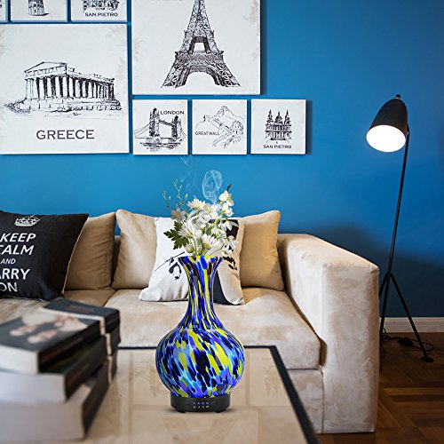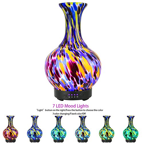 COOSA 100ml Glass Vase Aromatherapy Essential Oil Diffuser with 4 Time Setting Modes and 7 Color Changing LED Lights Cool Mist Humidifier Waterless Auto Shut-off for Home Office Bedroom Living Room