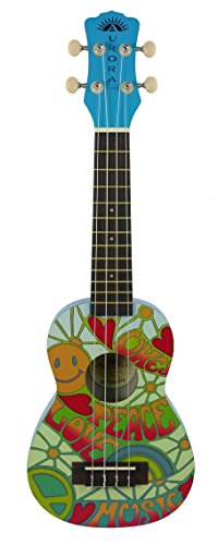 Studio : Luna Publisher : Luna Binding : Electronics Product Description Luna Aurora Ukulele Half-Size Guitar with Funky Designs By popular demand, Luna's favorite Aurora guitar designs - the Mermaid and Dragon - are now available as children's ukuleles. Another design, the Aurora Peace Uke, is designed by Luna's founder Yvonne de Villiers, based on Sixties poster art. The Peace Uke speaks to the inner wild child in us all, with colorful original artwork by Yvonne de Villiers. Based on Sixties poster art, "Peace, Love and Music" are celebrated in colorful words and images that raise a smile. Petite size and nylon strings make it an instrument that's ideal for learning, and comfortable to play. Though designed for children, the Tribal Teal Peace Uke is sure to speak to flower children of all ages. The Dragon-themed ukulele features a cool yet warm yellow fret piece with colorful rainbow and a dragon under the strings. Lastly, the Mermaid designed ukulele features a wonderful cool water blue color with a mermaid swimming around. All 3 options are an excellent choice for him or her. This makes the perfect gift for anyone looking to expand their music knowledge and learn how to play the Uke, or simply those looking for an added item to their playroom. It's small design allows easy to carry and bring with you to the beach or park. Bring it on vacation or play in the basement. Features: 1/2 Size Ukulele (Soprano Size) Funky, Colorful Sixties Design Nylon Strings Great for learning or playing Choose from 3 options available: Dragon, Mermaid, Peace Buy from an Authorized Luna Aurora Dealer 0
