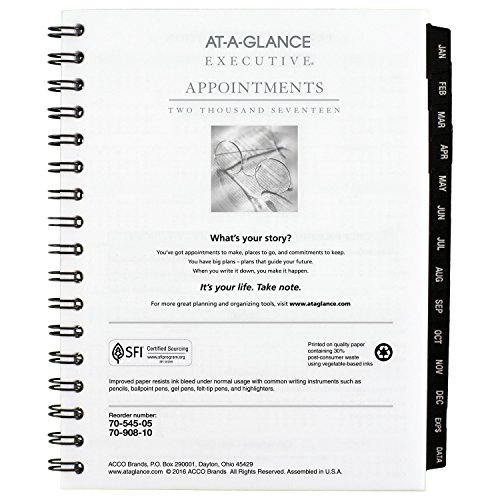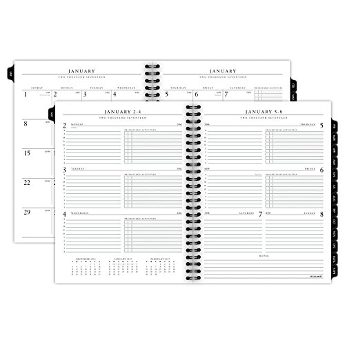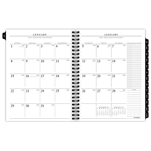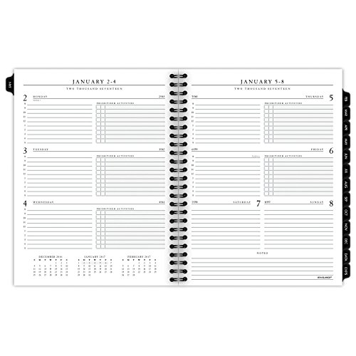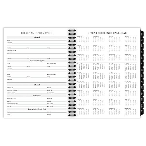 Months are tabbed to quickly turn to any date. Prioritized activities and notes column with each monthly spread. Includes separate telephone / address refill. Improved paper resists ink bleed and contains 30% postconsumer waste recycled content