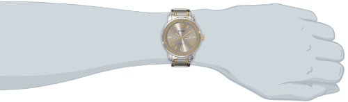 -. Feature : 41mm round two-tone case with gold-tone crown / Grey sunray dial with gold-tone Roman numerals II, IIII, VI, VIII, X, and XII, with markers at other hours; day and date calendar window at 3 o'clock / Gold-tone luminous filled hour and minute hands and gold-tone second sweep / Two-tone adjustable link bracelet; fold-over clasp with double push button safety closure / Water resistant to 165 feet (50 M): suitable for swimming and showering