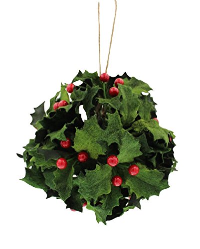 - 6-inch Artificial Flocked Velvet Holly and Berry Hanging Ball Ornament