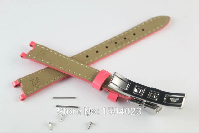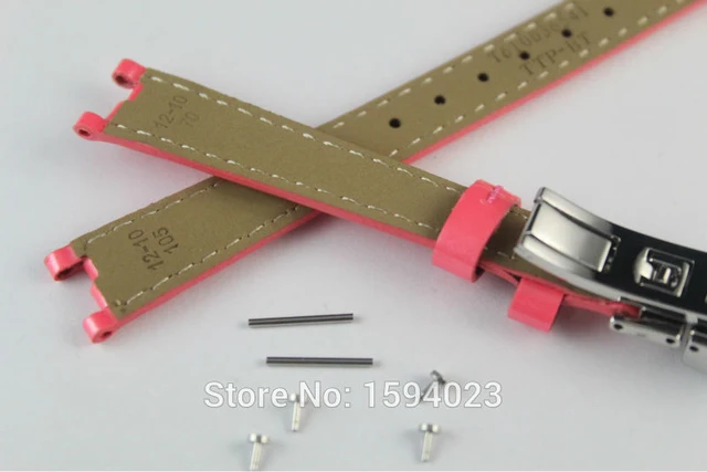 | [해외]12 미리메터 (Buckle10mm) T094210A 높은 품질 실버 버클 + 핑크 정품 가죽 코트 페인트 시계 밴드 스트랩 T094 |