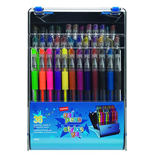 -. Title : Staples Gel Pens, Assorted Point Sizes and Ink Colors, 36/Pack
