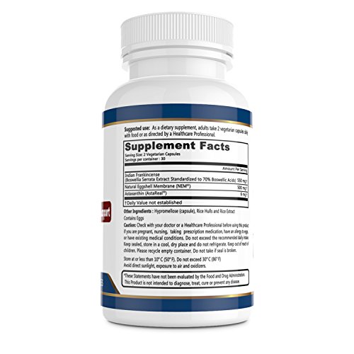 Astaflex offers 3 in 1 maximum joint support. Ingredients include 500mg of NEM® brand of Eggshell Membrane, 550 mg of Boswellia Serrata and 6mg of Astareal® Astaxanthin. Specifically formulated to help maintain and improve joint health