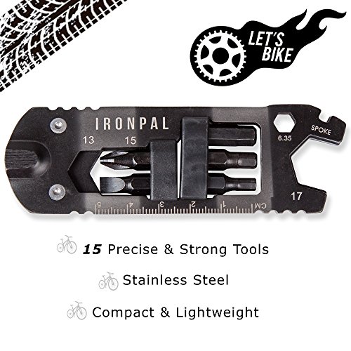 BIKE MULTITOOL REPAIR KIT 15 IN 1 BY IRONPAL. MULTI FUNCTION BICYCLE TOOL STRONG & SLIM DESIGN MADE OF STAINLESS STEEL, NO RUST. PORTABLE COMPACT HEX WRENCH BIT SYSTEM, PRECISE & DURABLE FOR ALL BIKES