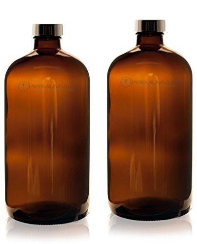 Premium Vials, Set of 2 Thick-plated, 16 oz Amber Glass Bottle Apothecary Jar with a Sleek Rounded Shoulder Design and Black Lid
