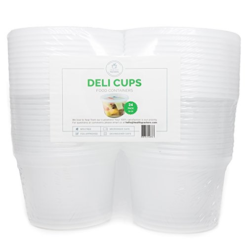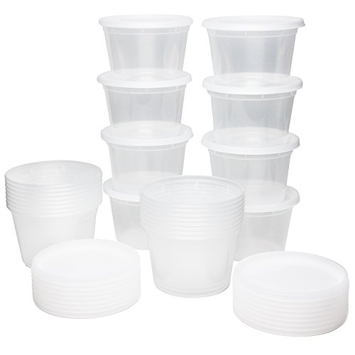 Premium reusable 16 oz food, soup and general storage containers. Package of 24 with tight fitting, 100% leakproof lids. Works great for all kinds of storage uses. Stackable clear polypropylene plastic. Microwaveable, Freezer Dishwasher Safe Each is 3" tall x 4.6" Diameter top x 3.3" Diameter base We stand completely behind our products. 100% Satisfaction Guaranteed. 0 |