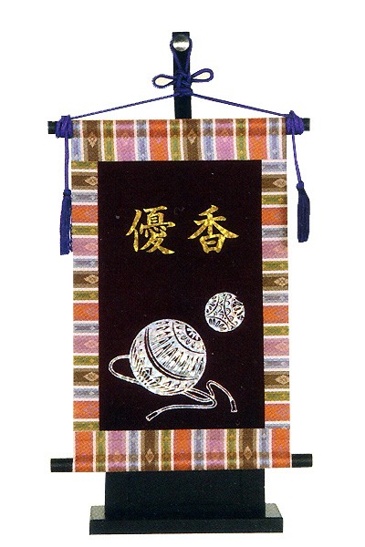 | ◆商品説明◆ | 雛人形 名前旗 タペストリー 【 間口23 奥行10 高52cm 】 台座付き。世界に一つだけ【オンリーワン】の商品です。健康と幸せを願って仕上げた。【収納】スペースもコンパクトに【収納】出来るおすすめ品の「初正月飾り」「雛人形の旗」です。お子様の初節句には、やはりこだわった名前旗、のぼりが欲しいとの、お客様からの要望が最近特に多く、上品に仕上がりました。親御様、お子様、縁者様の健康と発展を願いながら職人が丁寧に仕上げた【正月飾り】【羽子板】【ひな人形】に初正月・初節句のお祝いにはなを添えます。 当商品は特別別注商品ですので、キャンセル等はご容赦下さい。 「ご注文方法」 まずカートをクリック下さい。数量をご確認下さい。 ご注文1ページのページ下段の【その他 配送など店舗への要望】欄にお名前(3文字程度 自体が小さくなりますが最大で5文字まで可能です。)ご入力ください。制作には約10日前後要します。