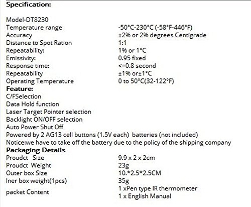 Heartte@ Mini Non-Contact Pen Type Temperature Meter Measurement -50--+230 Degree IR Infrared Thermometer (MX-DT8230)