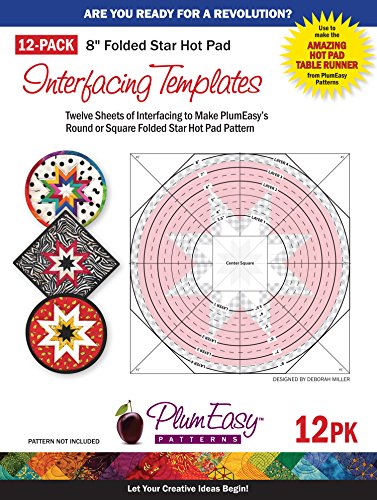 Folded Star 8-inch Hot Pad Interfacing Templates 12-pack: 12 Custom-printed 8.5" X 11" Interfacing Templates Made for Use with Plumeasy's Round or Square Folded Star Patterns