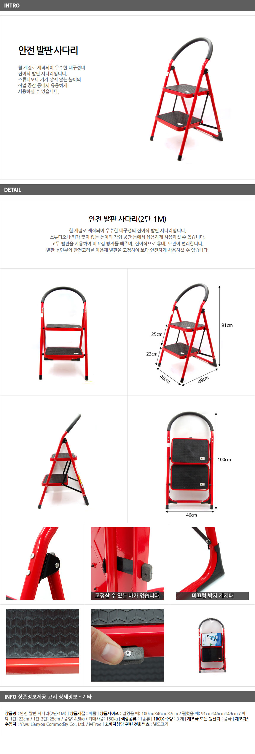 Mobile step ladder 2 stage - 1M iron folding safety