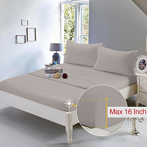 Queen Size Comfortable 4pc Bed Sheet Set includes a 90" x 102" flat sheet, 80" x 60" x 16" fitted sheet, and 2 pillowcases 20" x 30". Deep pocket fitted sheet with elastic all around (not just the corners, like other sheets). Fits mattresses up to 16"